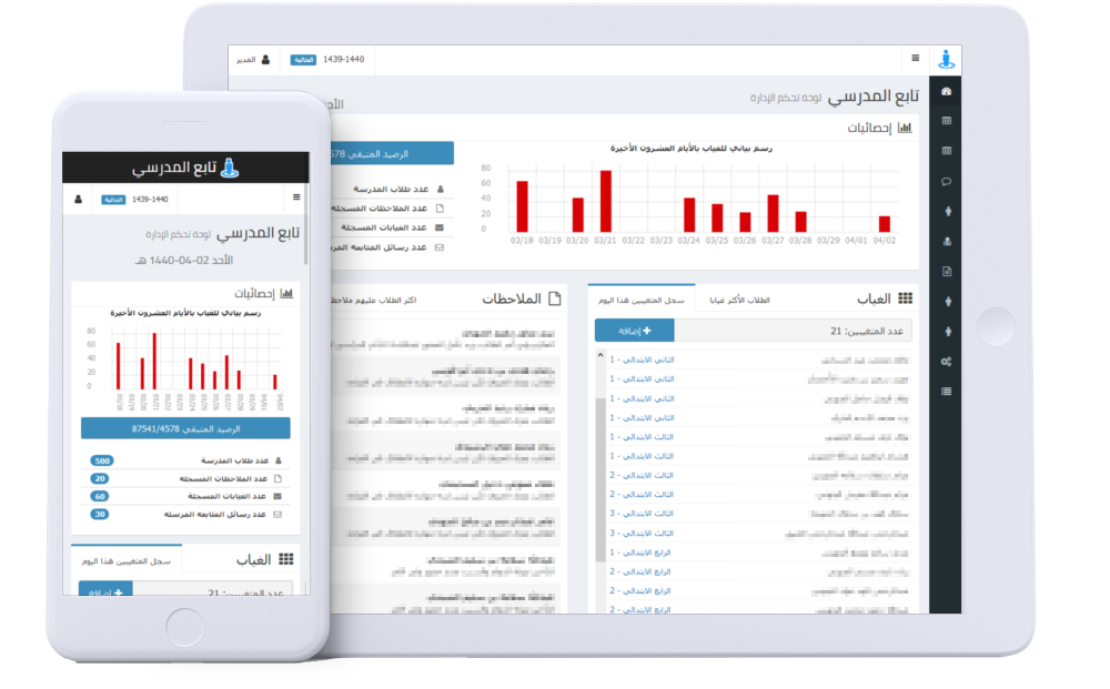 بضغطة زر واحدة، تستطيع إدارة المدرسة الاطلاع على كل التفاصيل الضرورية لتعزيز الكفاءة الإدارية والانضباط العام.